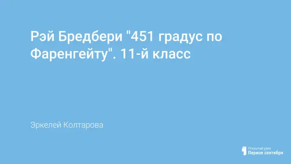 Повесть Брэдбери дает возможность поговорить со старшеклассниками о противоречиях технического прогресса, о путях развития человеческой цивилизации, о том, что "где-то вновь должен начаться процесс сбережения ценностей".