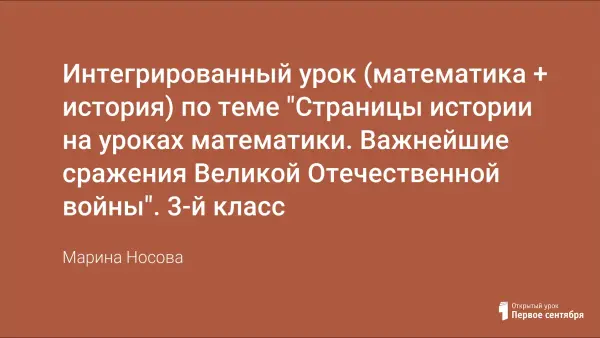 Представленный урок проведён в апреле 2010 года, в год 65-летия Победы советского народа в Великой Отечественной войне. Цель урока: через исторический и математический материал урока прививать интерес к историческому прошлому страны.