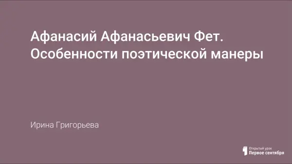 Своеобразие поэтической манеры А.А. Фета проявляется в сопоставлении его стихов с произведениями других авторов (А.С. Пушкина и самих учеников, выступивших неожиданно для себя соавторами Фета). На уроке сравниваются два «Узника». Ученики осмысливают понятие "импрессионизм" как в живописи, так и в поэзии Фета. Урок развивает критическое мышление.