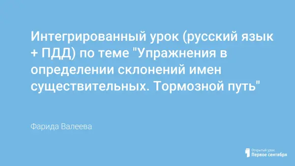 Интегрированный урок русского языка и ПДД. Цель: научить определять склонение существительного, если оно стоит не в именительном падеже; обобщить знания детей о склонении имён существительных; развивать орфографическую зоркость; продолжать формировать у учащихся представления о безопасном поведении на улице и дорогах; ввести понятия «тормозной путь», «тормозное расстояние»; популяризировать правила дорожного движения.