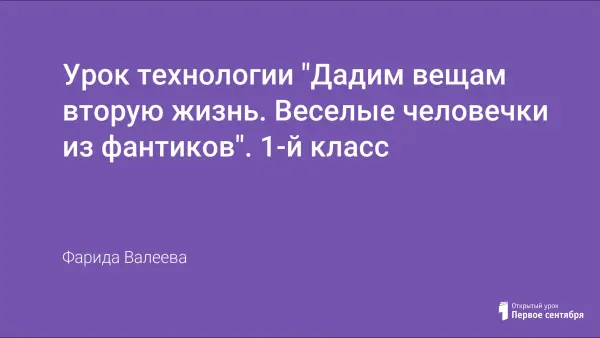 Каждый человек может многое сделать для сохранения чистоты в доме и экологической обстановки окружающей среды. Важно правильно распоряжаться теми вещами, которые становятся ненужными. Если чуть-чуть задуматься, из этих вещей можно создать удивительные объекты, подарив им второе дыхание. На уроке технологии в 1-м классе учитель и дети дарют вторую жизнь конфетным фантикам, сворачивают веселых человечков.