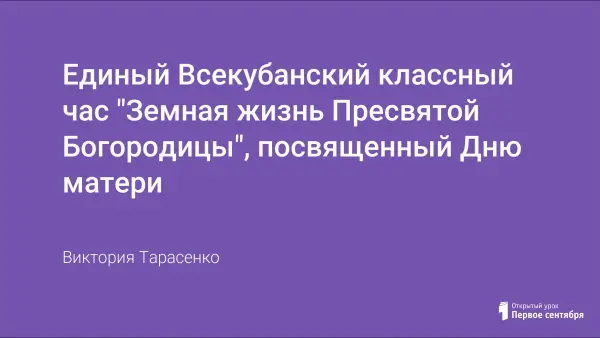Классный час способствует развитию духовно-нравственного потенциала учащихся, воспитанию чувства любви и уважения к матери, знакомит с основными событиями, произошедшими в земной жизни Пресвятой Богородицы.