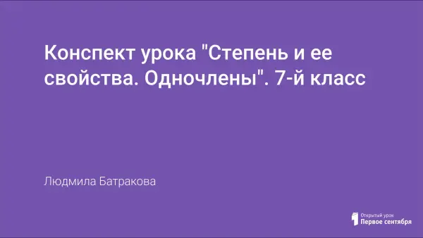 На уроке систематизируются и углубляются знания учащихся по изучаемой теме; отрабатываются навыки применения свойств степени; умножения одночленов; возведения одночленов в степень.