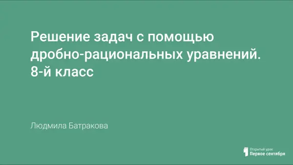 Открытый урок по алгебре по решению задач с помощью рациональных уравнений с использованием системно-деятельностного подхода в обучении и формирование УУД. Эффективность открытого урока отслеживается через рефлексию участников.