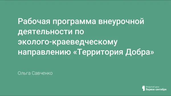 Рабочая программа внеурочной деятельности по эколого-краеведческому направлению «Территория Добра»