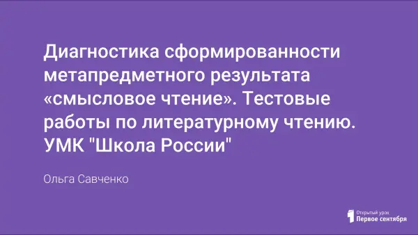 Диагностика сформированности метапредметного результата «смысловое чтение». Тестовые работы по литературному чтению. УМК "Школа России"