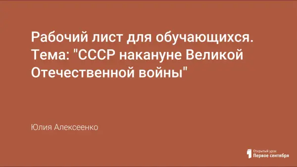 Автор предлагает проанализировать советско-германские отношения накануне войны; выяснить плюсы и минусы этих отношений; охарактеризовать советско-финскую войну и ее последствия; определить степень готовности СССР к войне с Германией.