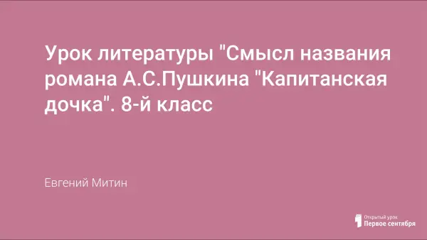 Представлен урок литературы, на котором систематизируется изученный материал по образу М.И. Мироновой, раскрывается смысл названия романа «Капитанская дочка». На уроке формируется представление об особенностях художественного метода А.С.Пушкина и системе его духовных ценностей, развивается умение анализировать нравственно-этический выбор героев романа.