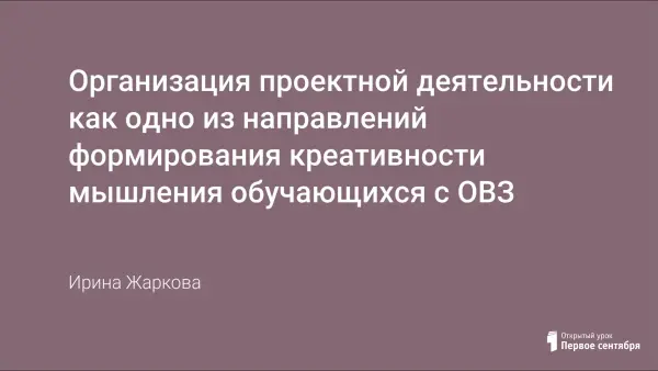 В статье рассматриваются основные аспекты организация проектной деятельности как одно из направлений формирования креативности мышления обучающихся с ОВЗ.