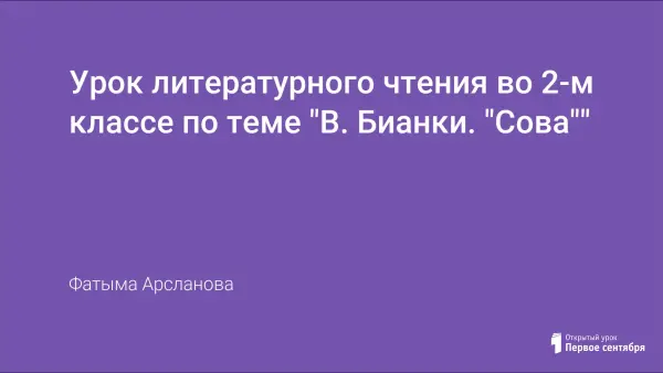 Цели урока: продолжить знакомство с творчеством В.В. Бианки; познакомить с содержанием текста «Сова»; дать понятие о новом литературном жанре «познавательная сказка», закрепить знания об особенностях сказок.