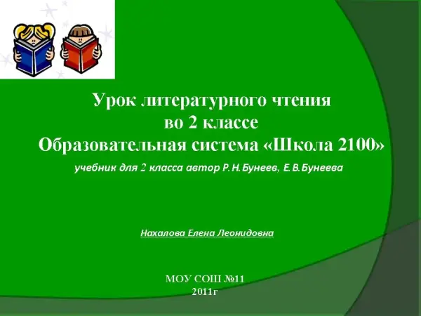 Урок литературного чтения по программе «Школа-2100» учит детей слушать друг друга, проявлять интерес к версиям, предложенным другими во время обсуждения, вырабатывает одну общую версию предполагаемого текста. Совершенствуется техника чтения.