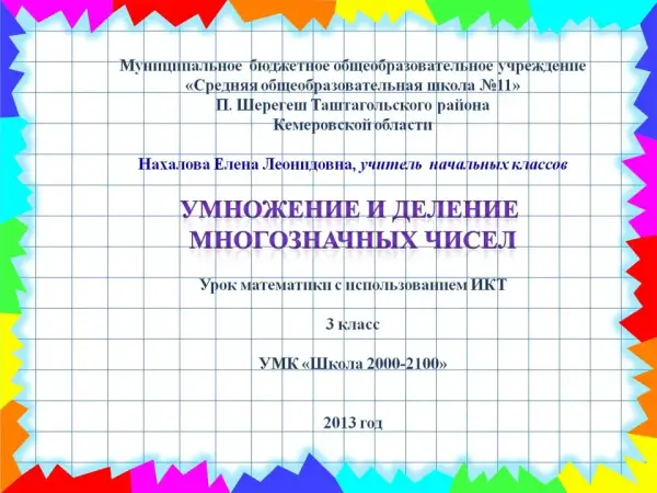 Цели урок: закрепление алгоритма умножения и деления многозначного числа на любое многозначное число; повторение решения уравнений и числовых выражений на порядок действий, решение составных задач.