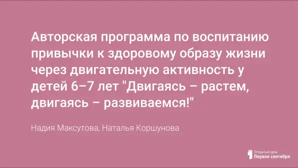Авторская программа по воспитанию привычки к здоровому образу жизни через двигательную активность у детей 6–7 лет "Двигаясь – растем, двигаясь – развиваемся!"