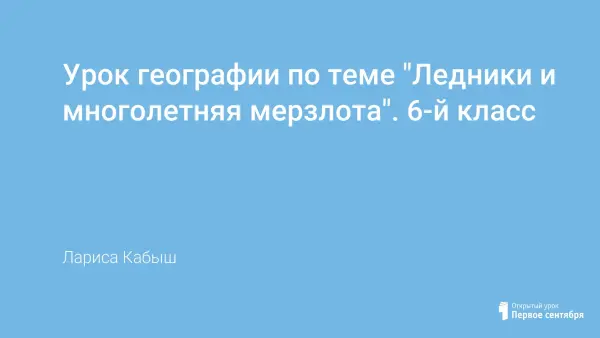 Цель урока: сформировать представление о ледниках и многолетней мерзлоте, видах ледников, причинах их возникновения, роли ледников и многолетней мерзлоты в природе и хозяйственной деятельности людей.