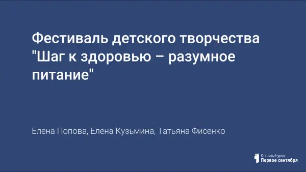 То, что от качества питания зависит наше здоровье, сегодня является банальной истиной. Научить ребёнка из множества продуктов выбирать наиболее полезные для здоровья, продукты традиционные для стола русского человека, поможет фестиваль детского творчества "Шаг к здоровью – разумное питание".