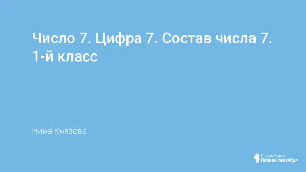 Основные цели урока: ввести число 7, цифру 7; разобрать состав числа 7; закрепить взаимосвязь между частью и целым, сложение и вычитание на числовом отрезке; развивать вычислительные навыки, мышление, речь, познавательные интересы.
