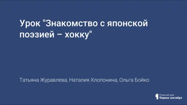 Урок формирует умение видеть "красоту в простом". Учитель знакомит детей с японской поэзией и дает представление о жанре хокку. Учащиеся формируют навыки анализа лирического произведения, развивают мышление, воображение, творческие способности, устную речь.