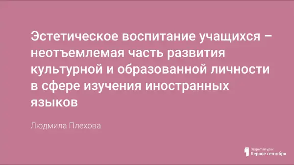 В статье автор предлагает сочетать обучение со многими формами всестороннего развития личности, в том числе эстетического. Это возможно при условии тщательно продуманного плана ряда уроков.