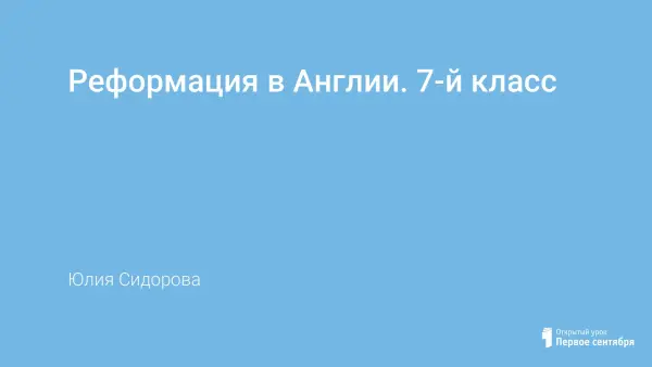 Урок позволяет формировать представление учащихся об особенностях проведения реформации в Англии. В процессе работы обучающиеся учатся делать сравнительный анализ, работать с текстом, работать с иллюстрациями, делать выводы, давать оценку событиям.