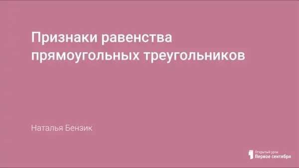 Каждый учащийся готовит к уроку задачу с практическим содержанием, при решении которой используется признак равенства прямоугольных треугольников. Задания воспитывают коммуникативные качества личности; самостоятельность, ответственность, эстетический вкус; учащиеся мобилизуют свои знания, опыт, воображение. Урок о проводится с использованием интерактивной доски Interwrite.