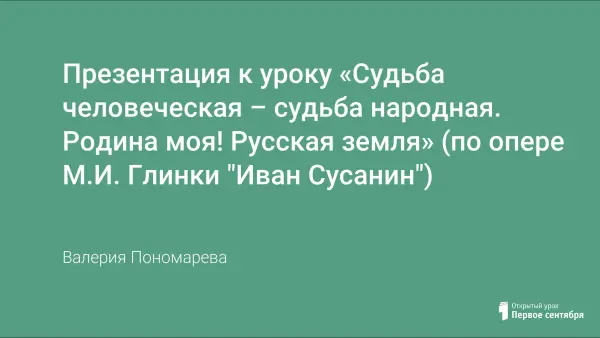 Данная презентация позволяет углубить знания об оперном спектакле «Иван Сусанин», понимание его драматургии га основе взаимозависимости и взаимодействия происходящих в нем явлений, событий, переданных интонационным языком музыки.