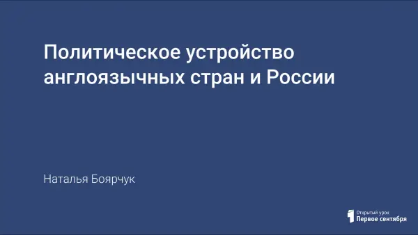 Предлагаемый проект проводится в виде конференции, посвященной политическому устройству англоязычных стран и России. Участники конференции рассказывают о выбранной стране (Россия, Великобритания, США, Австралия), приняв на себя роли политических деятелей, отвечают на заданные слушателями вопросы и готовят презентацию страны, которую они представляют (или пишут небольшую заметку).