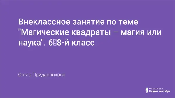 Внеклассное мероприятие повышает интерес к математике, познавательную и творческую активность учащихся. Построение магических квадратов ‒ интересное и увлекательное занятие и одновременно служит хорошей гимнастикой для ума, интеллектуально развивает учащихся. Групповая форма работы позволяет учащимся ставить вопросы, решать проблемы, распределять роли и сотрудничать, убеждать других, отвечать за себя.