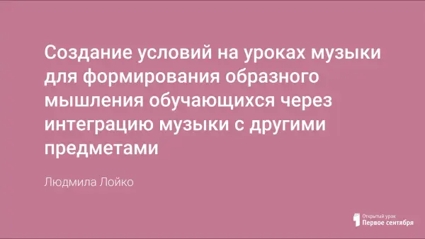 Акцент в своей профессиональной деятельности я делаю на формирование образного мышления у обучающихся через систематическую интеграцию музыки с другими предметами, а именно, с изобразительным искусством, литературой и историей. В своей работе я доказала, что через такую интеграцию происходит развитие образного мышления школьников.