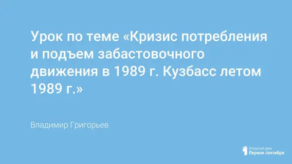 Урок включает в себя изучение вопросов социально-экономического развития СССР второй половины 80-х гг. XX в., итоги экономических реформ М.С. Горбачева и их провал. Особое внимание на уроке уделено событиям в Кузбассе, к которым было приковано внимание всей страны, роль шахтерской забастовки 1989 г. и ее последствия на развитие дальнейших событий в стране.