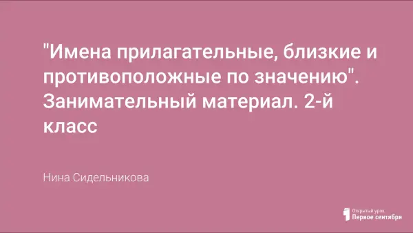 "Имена прилагательные, близкие и противоположные по значению". Занимательный материал. 2-й класс