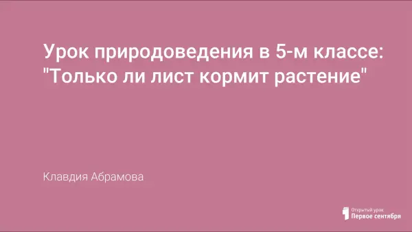 Урок природоведения в 5-м классе проводится в рамках курса «Природоведение. Введение в биологию и экологию» (Т.С.Суховой, В.И.Строганова). Акцент делается на двух функциях: укрепление растений в почве, где важно сформулировать представления о малой подвижности растений; поглощение воды с растворенными минеральными веществами, так как эти знания необходимы для усвоения понятий о роли растений в круговороте веществ.
