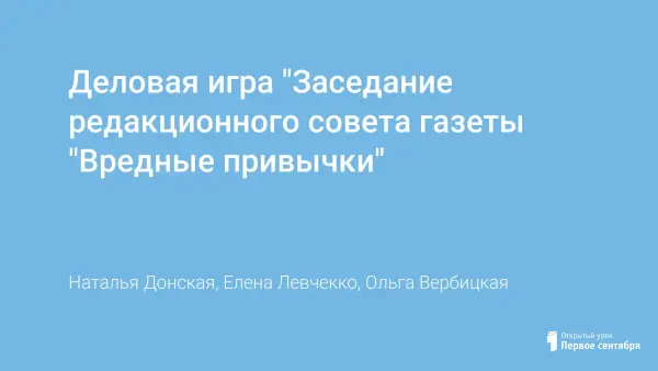 Деловая игра "Заседание редакционного совета газеты "Вредные привычки"