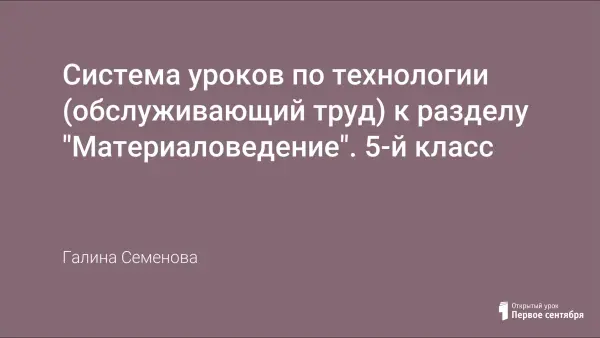 Данный ЦОР представляет собой уроки с презентациями по технологии (обслуживающий труд) в 5-м классе по разделу «Материаловедение», который знакомит с понятиями: текстильное волокно, виды растительных волокон, прядение, ткачество, пряжа, ткань, полотняное переплетение нитей. Презентации двух первых уроков используются при изучении нового материала. На последнем уроке перед практической работой используется кроссворд для повторения и закрепления полученных знаний.