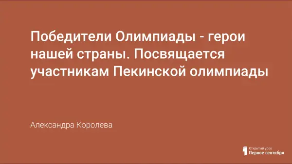 Сценарий знакомит учащихся с олимпийскими движением, спортивными традициями, с российскими (саратовскими) спортсменами-олимпийцами, с символикой современных Олимпийских игр. Автор развивает речь учащихся, умение делать выводы, расширяет кругозор. Пробуждает в детях желание серьёзно заняться каким-либо видом спорта, прививает навыки ЗОЖ.