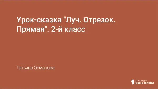 Цели урока: закрепить представления о понятиях "прямая", "луч", "отрезок"; научить детей распознавать прямые, лучи, отрезки; изображать их с помощью линейки, находить и обозначать точки их пересечения; закрепить навыки сложения и вычитания трехзначных чисел.