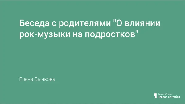 Музыка имеет огромное влияние на здоровье человека. Может лечить, но может и калечить. В частности, рок-музыка может нанести вред психике подростков. Оглушающие децибелы, низкочастотное и высокочастотное воздействие на подсознание, зомбирующий ритм, световые пульсации вызывают неадекватное, агрессивное поведение подростков. Уйти от негатива, научиться понимать настоящее искусство, в том числе и рок-музыку, можно только в близком, доверительном общении между детьми и их родителями.