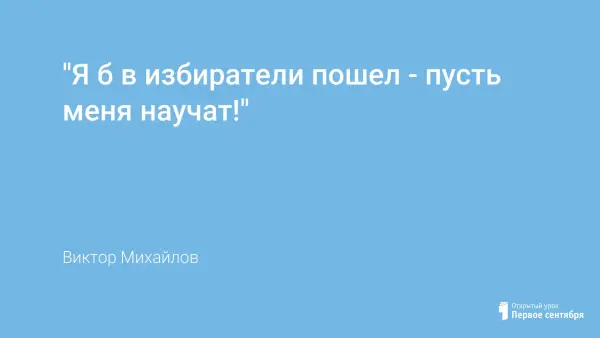 В статье представлена методическая разработка урока по обществознанию для выпускников 11-х классов и профессиональных училищ, которым предстоит впервые принять участие в выборах.