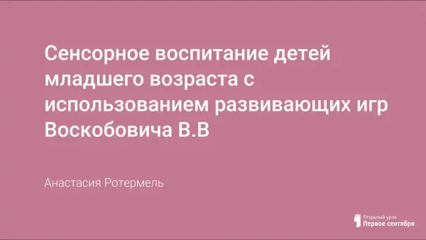 Творческий отчет содержит рекомендации по сенсорному развитию детей дошкольного возраста. Предлагается система дидактических игр и упражнений, направленных на последовательное развитие у детей восприятие цвета, формы и величины предметов. Данный материал может быть использован воспитателями дошкольных учреждений и родителями.