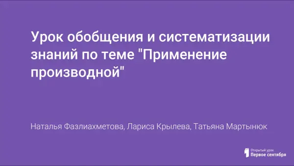 Урок обобщения и систематизации знаний по теме "Применение производной"