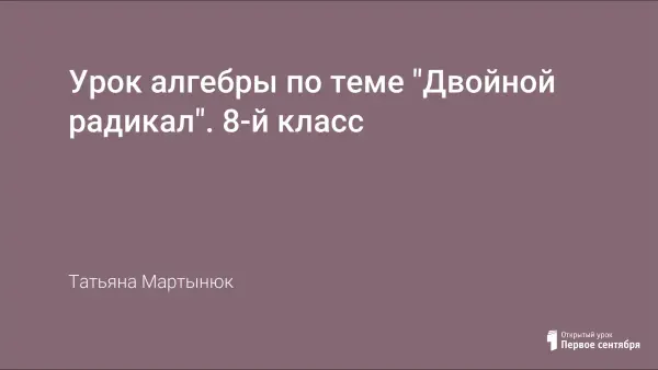 Урок алгебры в 8-ём классе, в котором рассмотрены способы преобразования выражений, содержащих операцию извлечения квадратного корня. Особое внимание уделяется преобразованию двойного радикала, доказывается формула двойного радикала.