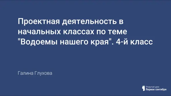 Урок по окружающему миру решает задачу, как организовать исследовательскую работу учащихся по изучению водоёмов родного края и результаты оформить в проект. Дифференцированная организация учащихся даёт возможность каждому сделать свой объём материала, при этом наглядно увидеть результаты своей деятельности.
