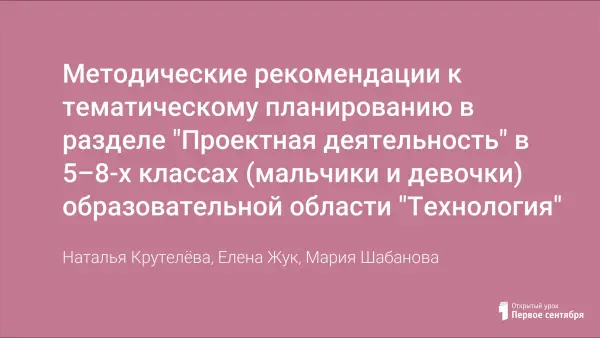 Методические рекомендации к тематическому планированию в разделе "Проектная деятельность" в 5–8-х классах (мальчики и девочки) образовательной области "Технология"