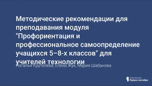 Методические рекомендации для преподавания модуля "Профориентация и профессиональное самоопределение учащихся 5–8-х классов" для учителей технологии