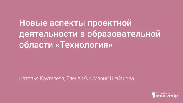 Новые аспекты проектной деятельности в образовательной области «Технология»