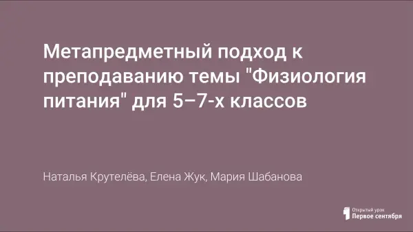 Метапредметный подход к преподаванию темы "Физиология питания" для 5–7-х классов