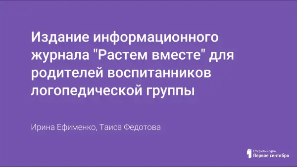 Издание информационного журнала "Растем вместе" для родителей воспитанников логопедической группы