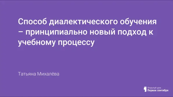 Способ диалектического обучения – принципиально новый подход к учебному процессу