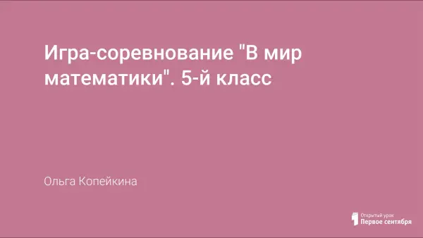 Сценарий игры-соревнования «В мире математики», рассчитанный на учащихся 5–6-х классов. Игра не требует глубоких знаний из области математики и большой подготовки, способствует развитию интереса к предмету и может проводиться в рамках предметной недели.