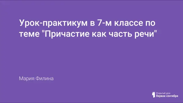 Цели урока: дать понятие о причастии как части речи; сформировать у обучающихся навык распознавания причастий.