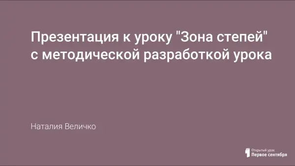 Цели урока: сформировать у учащихся представление о природной зоне степей. Познакомить с географическим положением зоны степей, ее особенностями, животным и растительным миром, ролью человека.